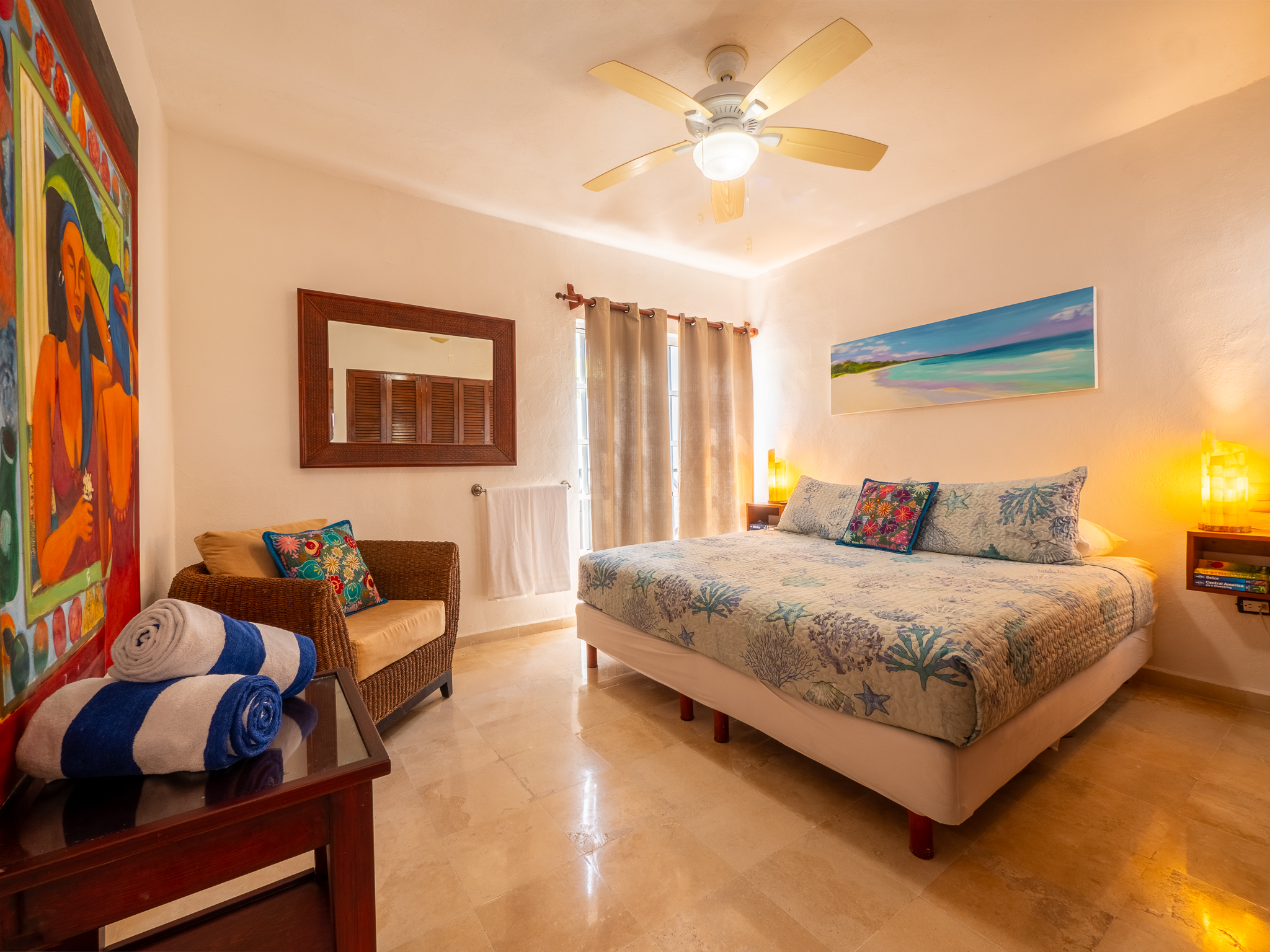 - Beach and bath towels are provided in each room for each guest.