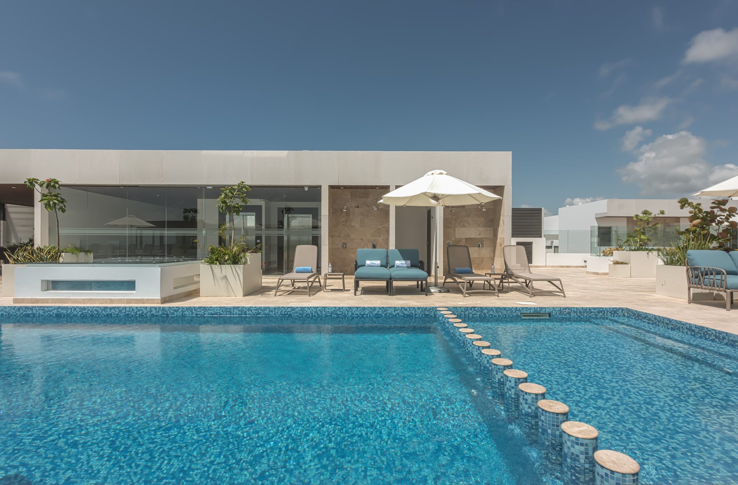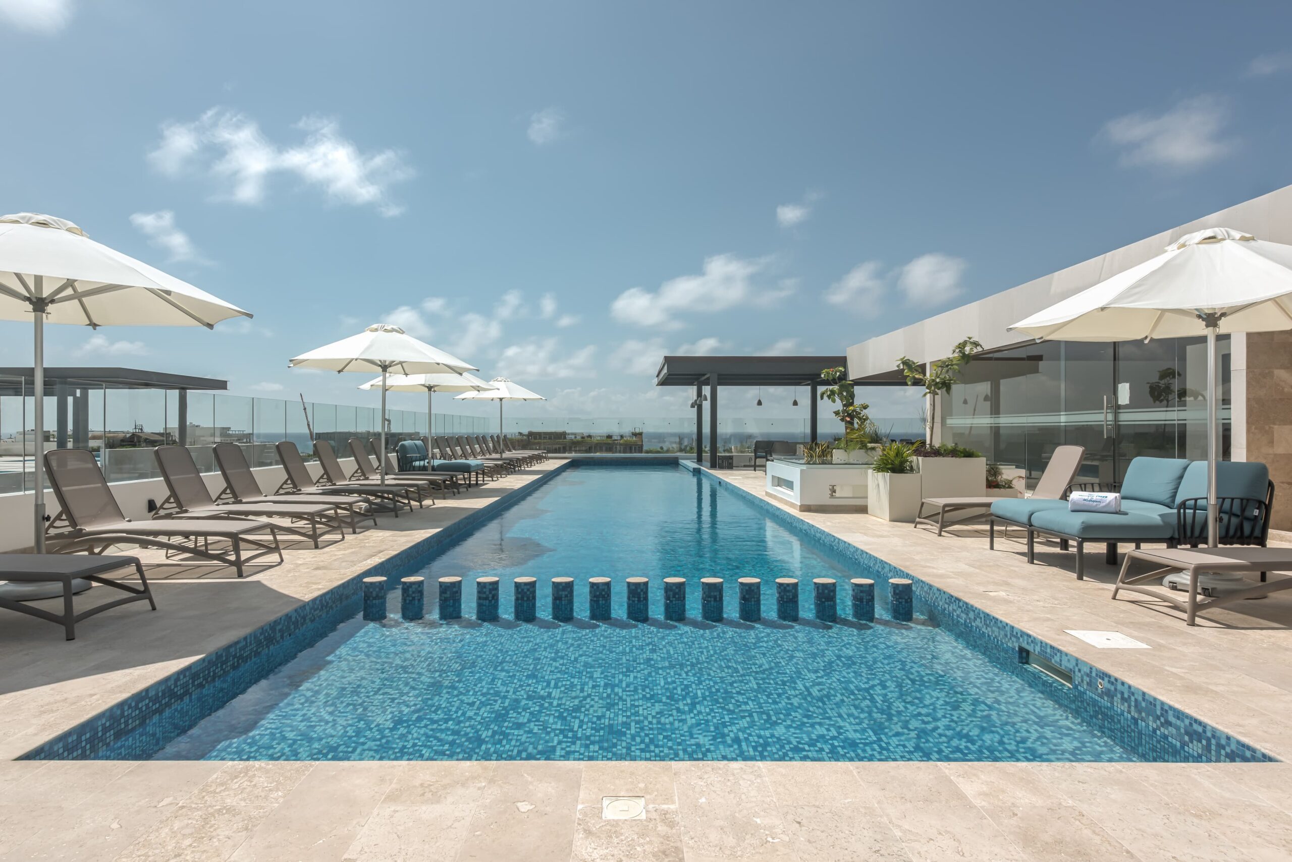 Modern residential development located in the vibrant area of Siempre Playa – Midtown, on the emblematic Calle 38, just one block from the famous Fifth Avenue and three blocks from the Caribbean Sea. It has resort-style amenities: 4 pools of which one is exclusive for adults, rooftop bar, gym, spa, pilates, yoga and much more.