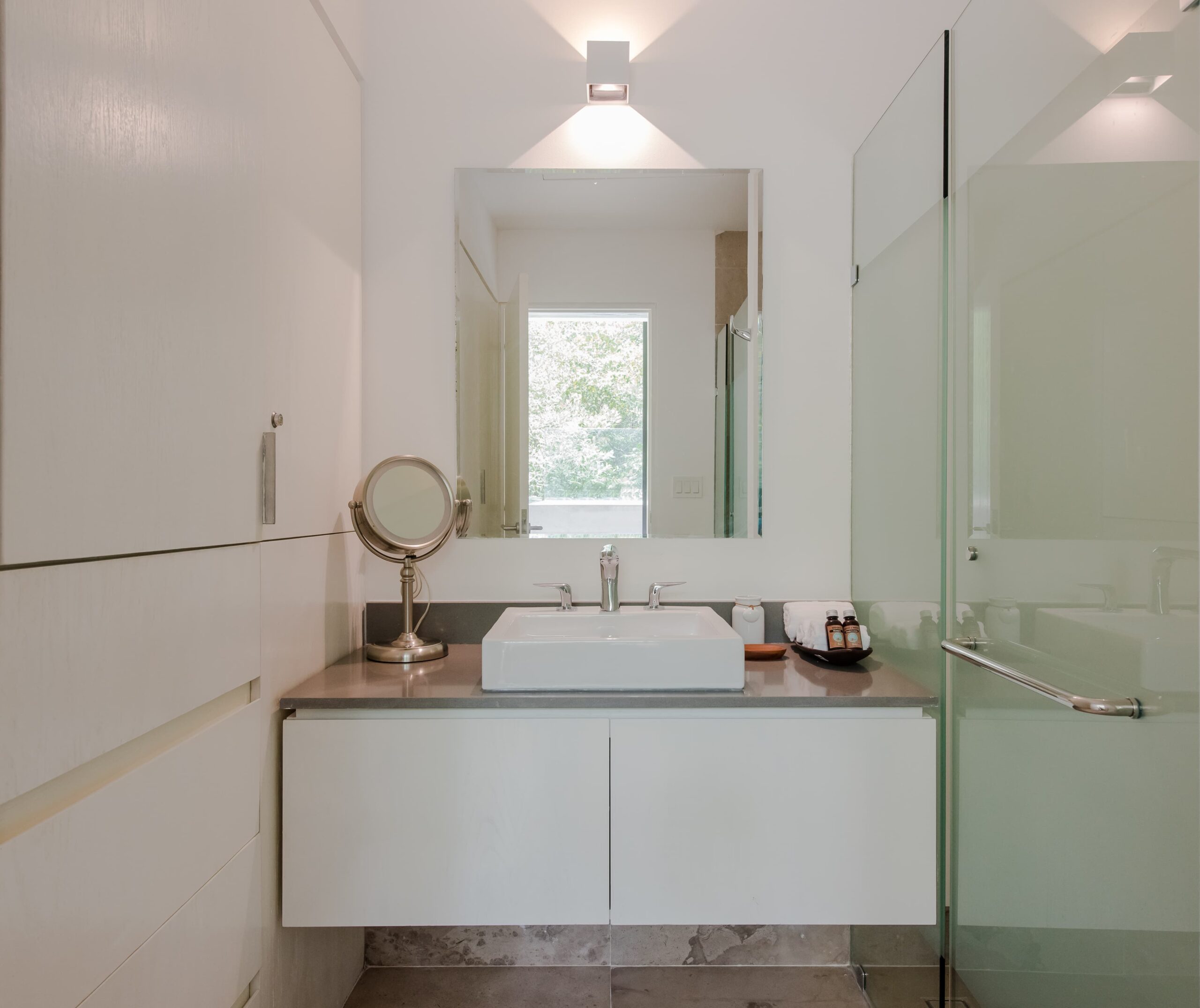 Each room has a private bathroom and a half guest bathroom