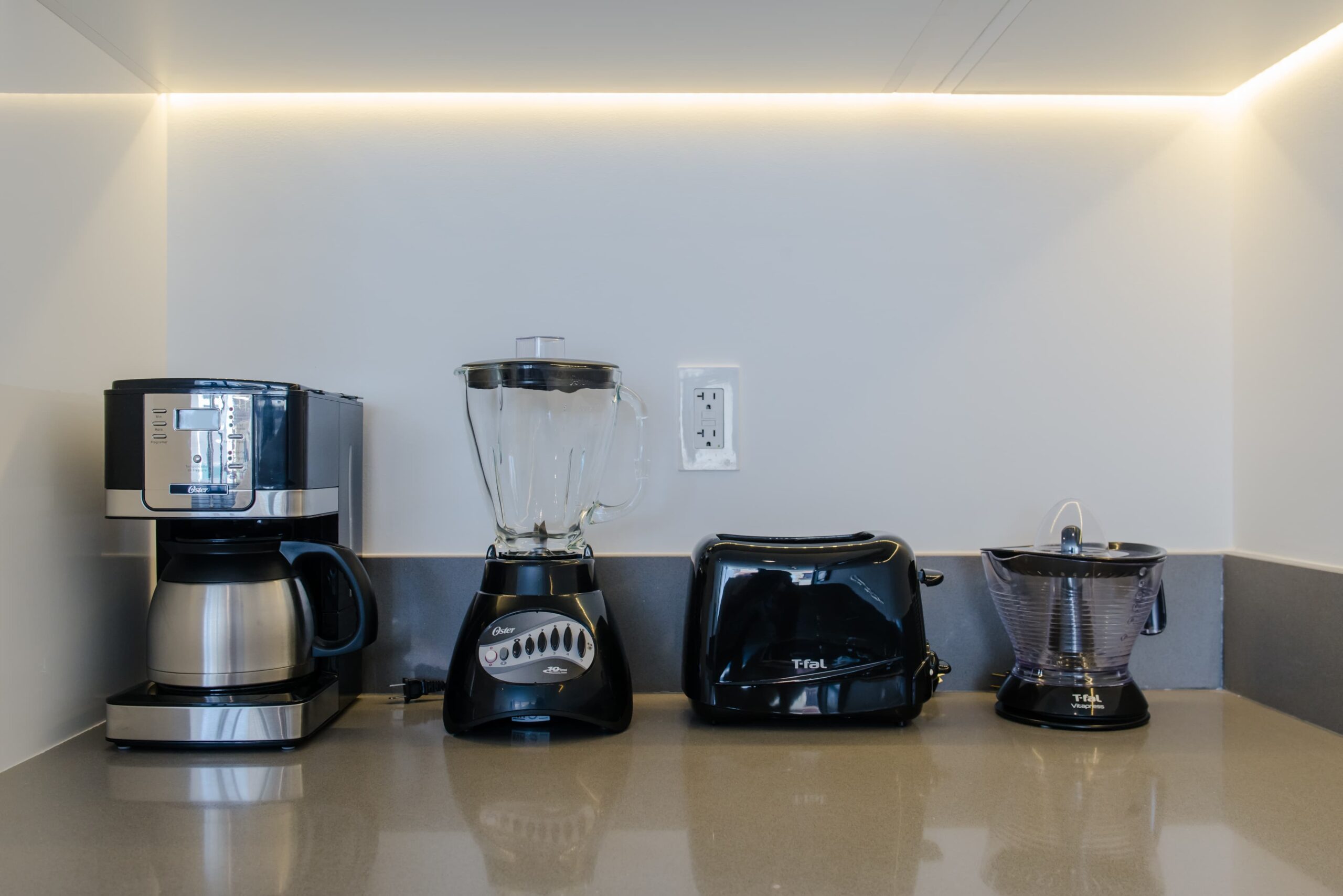 Kitchen equipped with stove, refrigerator and appliances