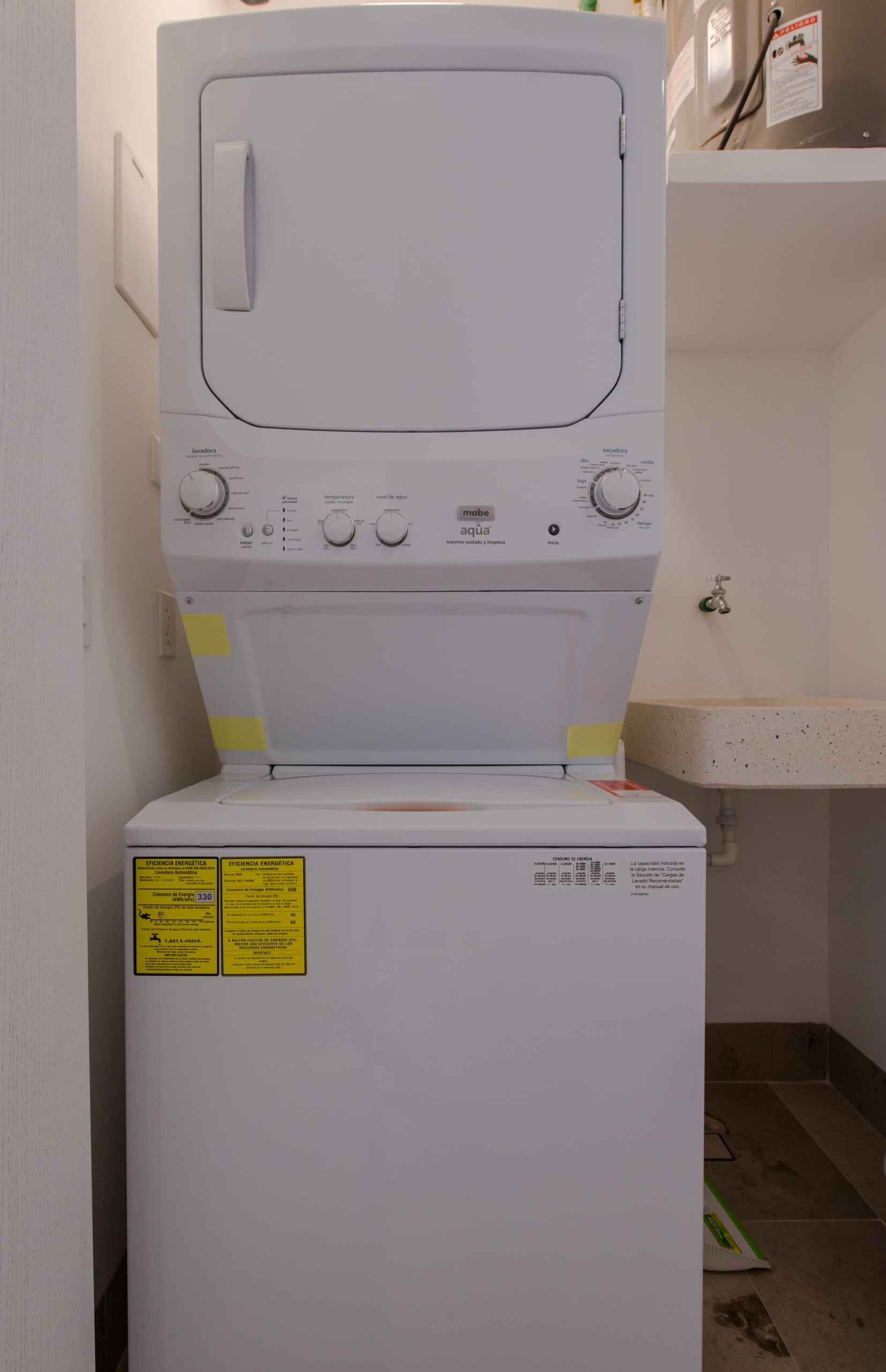 With laundry center inside the apartment.
