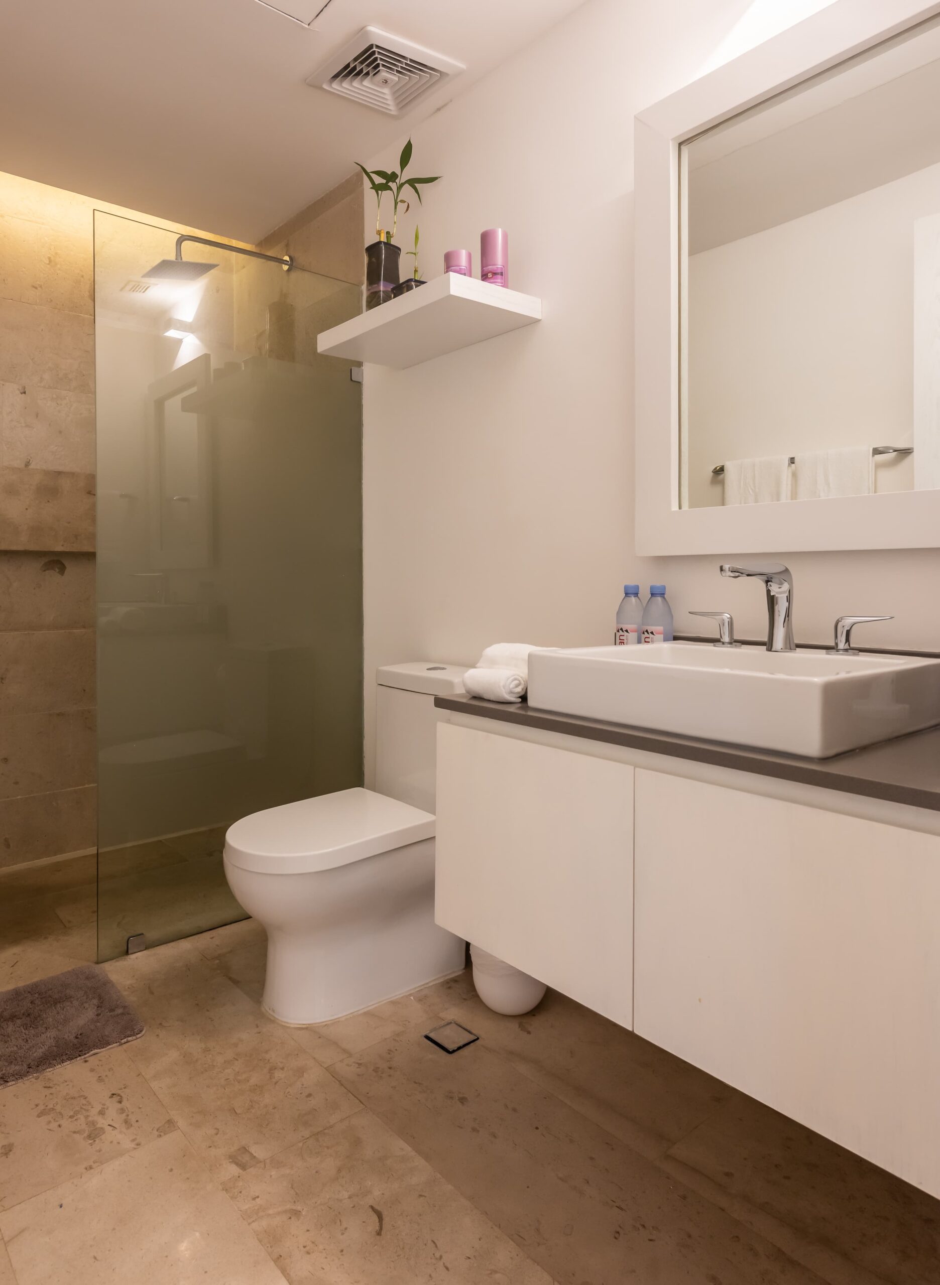 a bathroom in the main room and another in social areas