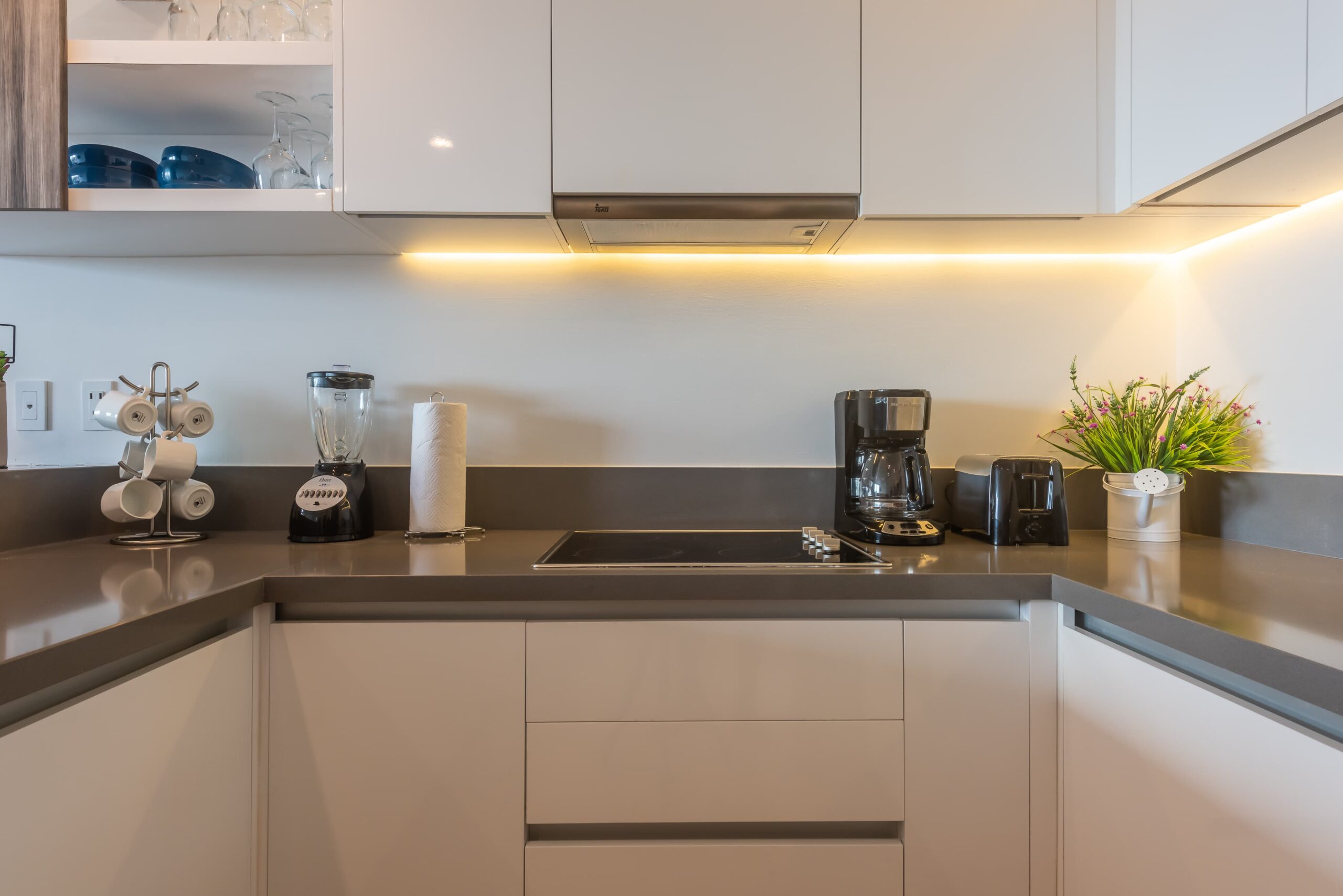 Kitchen equipped with stove, refrigerator and appliances