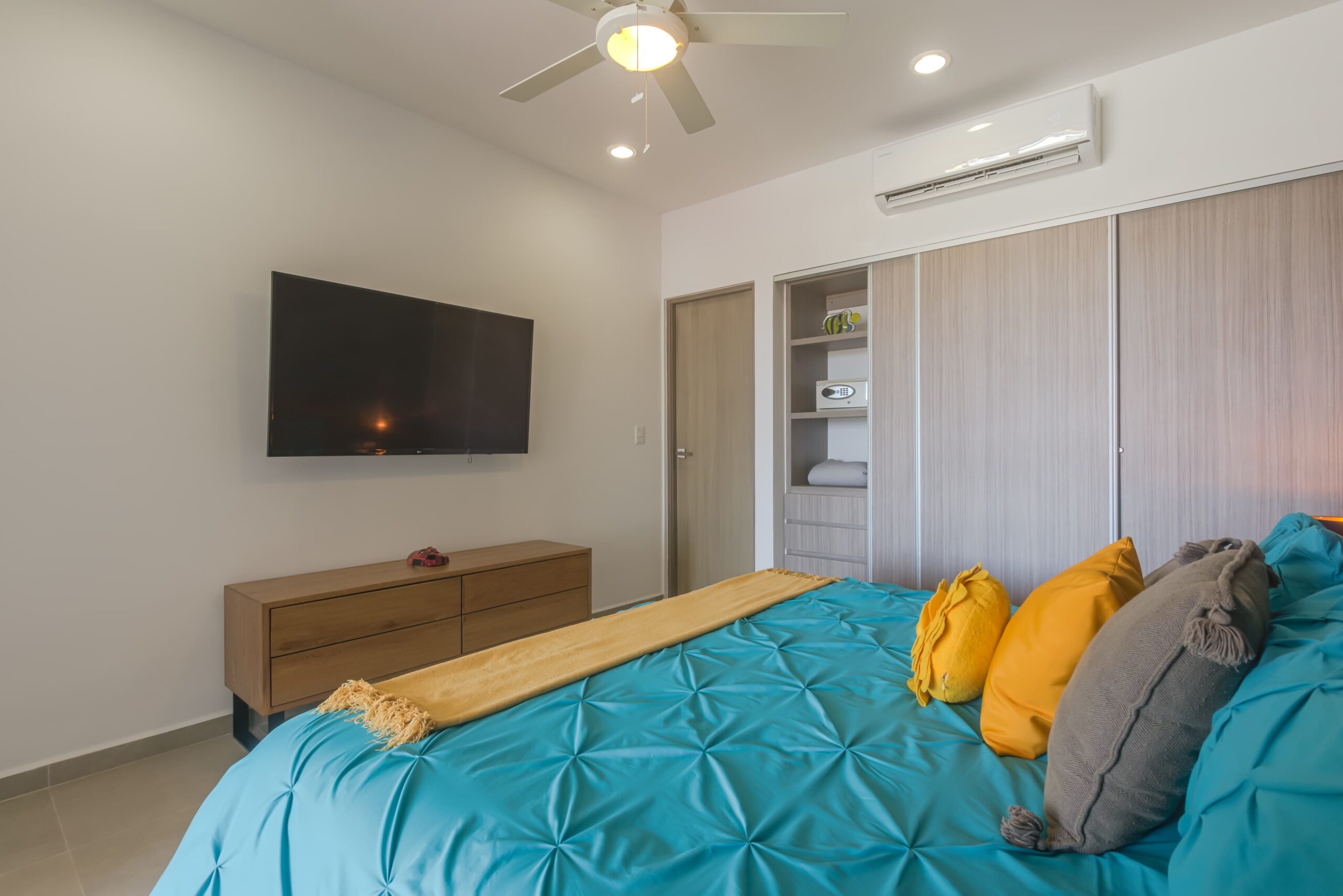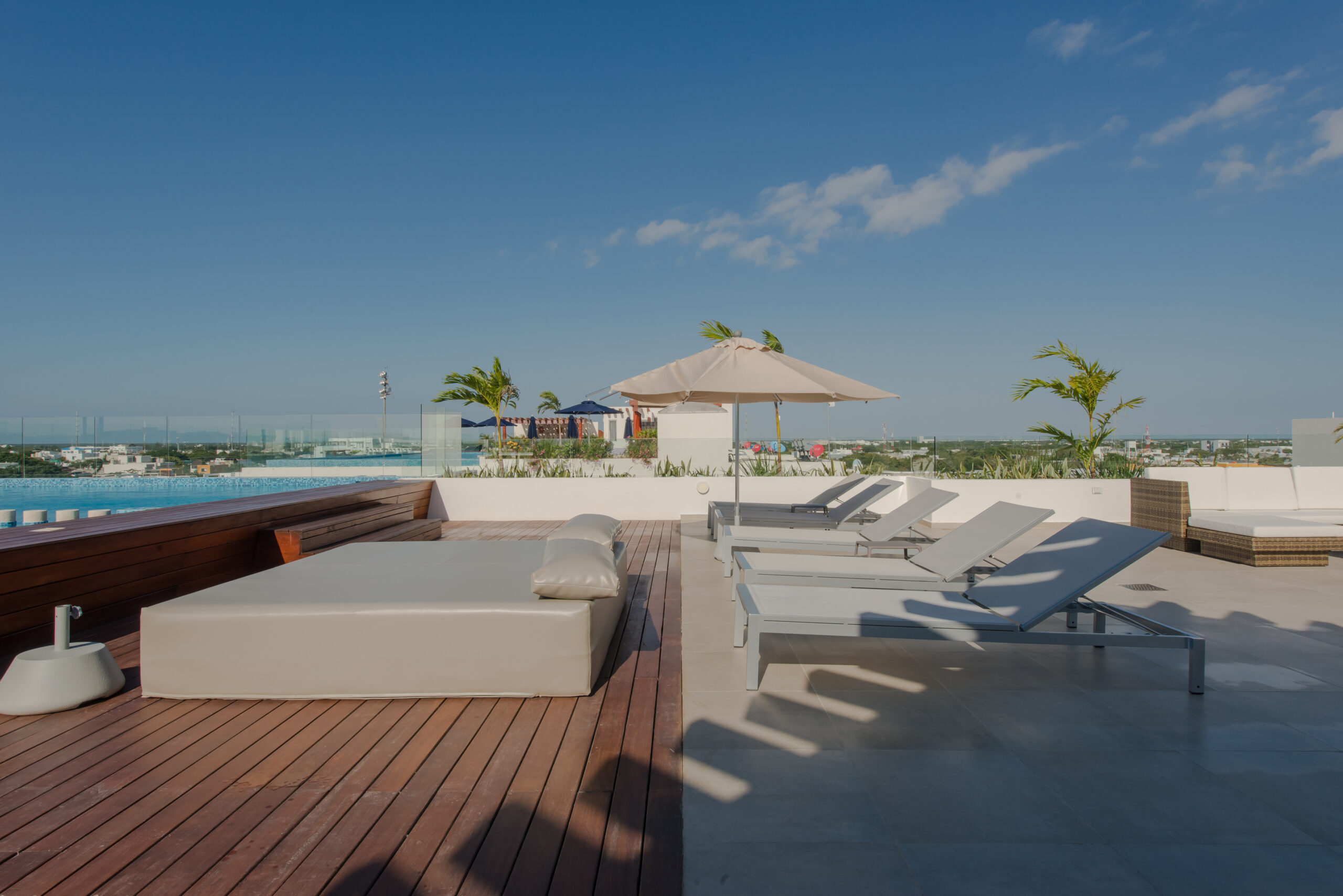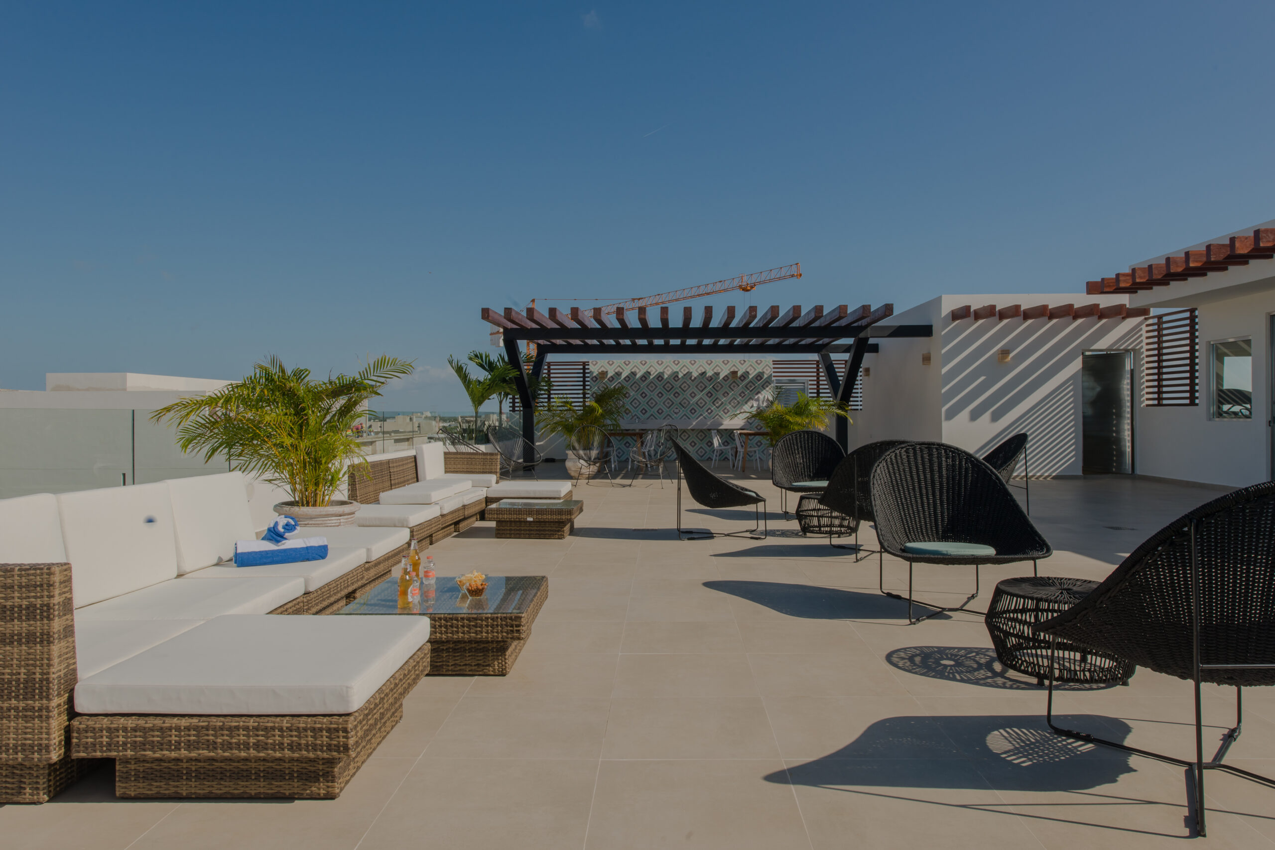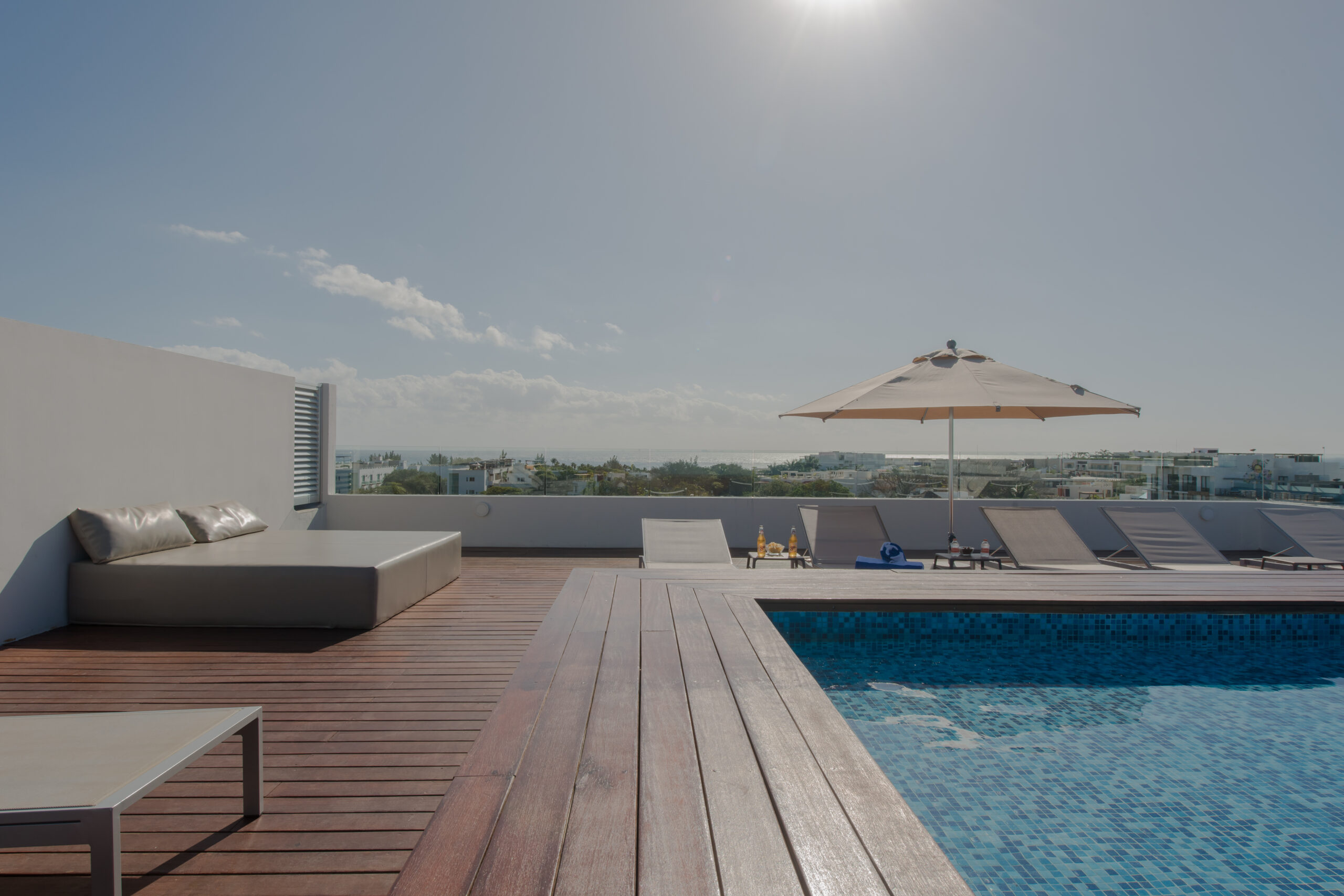 Solea is an elegant and well located condominium in Playa del Carmen, ideal for vacation stays. A few steps from the beach and 5th Avenue, it offers a rooftop swimming pool, equipped kitchens, air conditioning and a relaxed atmosphere with contemporary design.